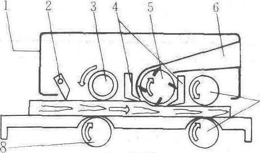 释义 | 压刨床thickness planing machines with rotary cutterblock for one side dressing又称单面压刨床。对木材上表面进行刨削加工的木工机床。常与平刨床配对使用,是常见的木工机床之一。压刨床由切削机构、工作台、压紧装置、进给机构、传动机构、床身及操纵机构等组成。它通过工作台的上、下调整控制工件的精确厚度。 压刨床 1.防护罩 2.反弹安全装置 3.进料辊 4. 断层器 5.刨刀轴 6. 排屑孔 7.出料辊 8. 下部进料辊 |