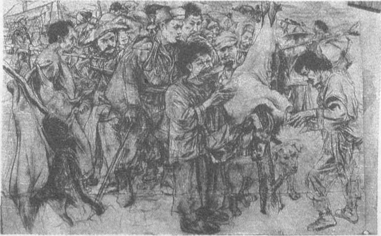 《贵州人》 王华祥 素描创作Sumiao chuangzuo具有欣赏价值的素描作品。或以素描形式完成的绘画创作。素描创作是画者为了充分地体现出表现意图而根据自己对描绘对象的认识与理解,创造性地处理对象的素描。例如珂勒惠支的《面包》,如图。素描创作还包括各种美术创作的素描稿,直接为美术创作做准备的素描。例如徐悲鸿的《鲁迅与瞿秋白》素描稿,为《毛主席在人民群众中》所画的毛主席头像素描,亦称创作素描。创作素描往往由于画家个人修养、思想情感不同,对客观对象的感受不同,主观表现意图的差异和审美趣味的区别而形成各自的风格。素描创作属于高层次的素描,其特点是大胆取舍,艺术概括,重点突出,形象强烈,具有鲜明的艺术个性。