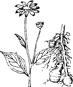释义 | 菊芋juyuHelianthus tuberosus俗称洋姜。双子叶植物,菊科、筒状花亚科。多年生草本。有块状地下茎,纺锤形或呈不规则瘤状。地上茎直立,上部分枝。基部叶对生,上部叶互生,长卵形,边缘有锯齿,叶柄上具狭翅。头状花序数个,单生于枝端,总苞片披针形,开展。花序边缘为淡黄色舌状花,中央为黄色管状花。瘦果楔形,有毛,上端有2~4个有毛的短芒。花期8~9月。性喜稍清凉而干燥的气候,适应性强。原产北美。我国各地常有栽培。用块茎繁殖。块茎富含淀粉。加工后可制酱菜,又可制菊糖,供治糖尿病用。叶为优良的饲料。 菊芋Jerusalem artichoke菊科(Com-positae)向日葵属中能形成地下块茎的栽培种。学名Helianthus tuberosus L.,别名洋姜、鬼子姜。染色体数2n=6x=102。地下块茎含丰富菊糖,系果糖多聚物。多炒食或盐渍加工,还可制造果糖和酒精。对糖尿病有辅助疗效。原产北美洲。中国各地有零星栽培。茎直立,高2~3米。叶卵形,先端尖,绿色,互生。茎扁圆形,有不规则突起。头状花序,花黄色。块茎无周皮,不耐贮藏。瘦果楔形,有毛。按块茎皮色分黄皮和白皮两个品种。耐寒耐旱,块茎在6~7℃芽眼萌动发芽,8~10℃出苗,幼苗能耐1~2℃低温,18~22℃和日照12小时有利于块茎形成。块茎在—25~—30℃的冻土层内能安全越冬。春季解冻后,选20~25克的块茎播种,株行距0.5米。播种深度7~10厘米。播后30天左右出苗。齐苗后追肥浇水,中耕除草并培土成低垄。块茎膨大时摘顶并勤浇水,促使块茎膨大。秋霜后收获。采收时可将小块茎留在土中,待翌年萌发出苗,并及时间苗、补栽。 菊 芋 菊芋girasoleHelianthus tuberosus L.,又称菊薯、菊𫉾、洋姜等。 菊科,向日葵属。 多年生宿根草本。 2n=6x=102。原产北美洲。中国各地有零星栽培。株高2~3 m。茎直立,扁圆,多分枝。叶长卵圆形,绿色,互生,叶柄发达。头状花序,花黄色,育性低,多用块茎繁殖。瘦果楔形有毛。根系发达,分枝多,入土深。有匍匐茎,先端肥大成块茎,呈梨形或不规则姜状。块茎有黄皮、白皮和淡紫红色等,肉质白色。每株有块茎15~60个。喜温暖干燥,忌炎热。对土壤要求不严,边隙地均可种植。块茎在—25~—30℃的冻土层内能安全越冬。秋霜后收获,遗留小块茎翌年萌发生长。或春季解冻后选20~25 g重的块茎随挖随种。块茎质地致密、脆嫩,宜腌渍,也可炒食;富含果糖、葡萄糖、菊糖,系果糖多聚物,对糖尿病有辅助疗效。也是制造果糖、酒精的原料。 菊芋 菊芋别名洋姜、洋生姜。多年生草本,高约3米。地下有块根及纤维根,茎直立。茎生叶下部对生,叶卵形或卵状椭圆形,上部叶互生,叶长椭圆形至宽披针形。头状花序少,多生于枝端。瘦果楔形。花期9—10月。新疆各地有栽培。块茎俗称洋姜或洋生姜。可作酱菜及成菜。块茎含有丰富的淀粉,是优良的汁饲料,也可制作酒精及菊糖,菊糖在医药上是治疗糖尿病的良药。 |