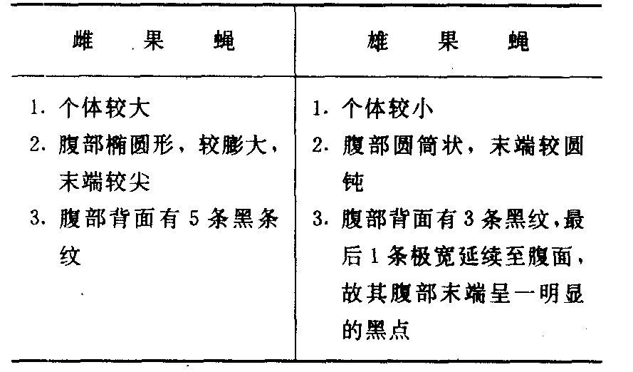 、果蝇的主要区别:
