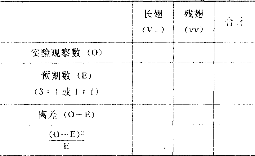 ,则观察值与理论值差异不显著。现举例说明,例如,F2代果蝇数为185个,其中长翅数为134,残翅数为51,观在要检验该结果是否符合理论结果,先假定该实验结果的长翅与残翅之比符合3:1,于是长翅的理论数为185×