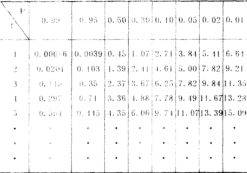 2大于表中数值的概率P。所以由自由度可查出相应的P,再依P值判断观察数与理论数的差异是否显著;当P>0.05时则差异不显著,若P≤0.05时则差异显著。或者查出显著水准(即P值)在0.05时的