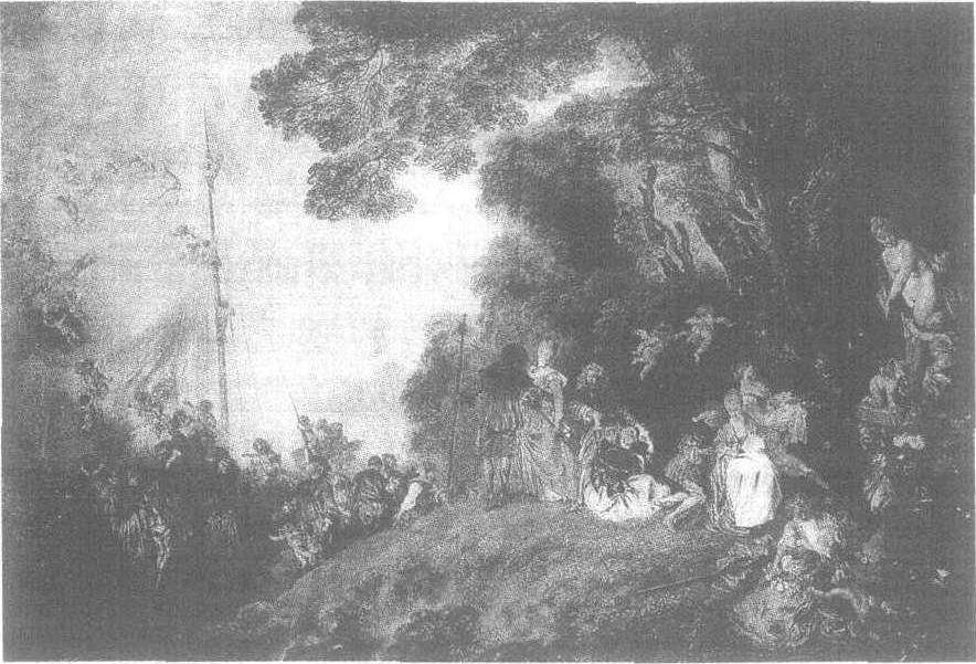 发舟西苔岛 华多 这幅“发舟”,是华多1712年到1717年间作的。他把这幅作品送交皇家艺术学院,居然被接受了下来,人家还送给他一个 “风流韵事画家” 的雅号。法国皇家艺术学院,在路易十四统治时期几乎控制了法国大部分的艺术生活。然而1715年 “太阳王” 驾崩之后,贵族们纷纷自凡尔赛宫散去,争先恐后在巴黎建造起自己优雅的私人住宅来,他们还邀来艺术家对这些住宅进行装饰。他们不再欣赏学院派的旧传统,而是对鲁本斯派的东西——色彩、光线、动作,还有生活中纯朴的欢乐,更感到兴趣。来自靠近佛兰德斯的法国北部边境的华多(1684—1721),就是这种追求唯美倾向的我们称之为罗可可风格的头一位最有才华的画家。他那自然、流畅的笔触和鲜艳夺目的色彩,不用说是来自鲁本斯的影响的,尽管它没有鲁本斯那种挥洒自如的气魄,不过却更加柔秀可亲、有一种半喜半悲的情调。而他所喜爱的题材——那个时代剧院中风靡一时的喜剧角色和情节,使我们在其中看到了时代生活的折射,这就是对有任何头衔的贵族来说,那是一个做戏的年代,是竟日谈情说爱、寻欢作乐的年代。华多的作品正是通过戏剧世界揭示了真实的人生,反映了没落贵族们的理想。然而更重要的是,他又从中看到了那只不过是落日时分转瞬即逝的余辉。华多性格柔和,并有点像 “牧羊人”,他在一群言谈风趣、举止高雅的朋友之间,显得有些格格不入,只在一旁冷眼旁观。他一生病魔缠身,在完成上述这幅作品后没几年,便早早地告别了人间,其时只有三十七岁,和拉斐尔死时的年龄相同。在他活着的时候,常常意识到死神的临近,悲哀的阴影一直笼罩着他,这也使他感到人生的短促。在华多的画面上,我们能感到一种在讲述爱的伊始的时候又暗示不久的离别,在进行 “优雅的盛宴” 的时候又予示着将要散尽的哀愁,其理由就在于此。 19世纪的雕刻家罗丹,曾以这幅画为例来说明艺术家敏锐洞察力的重要。他说,这里的每一对恋人虽然都穿着不同的服装,但实际上表现的是一对恋人在相爱中的心理变化过程。的确,画中两人的动作开始渐渐大起来,随着向缓和起伏的小丘对面行进,动作又逐渐变小。这样子,很像电影中追求时间推移的镜头。我们知道,画家捕捉并且表现出来的只能是瞬间形象。18世纪的画家们解决了所谓以一连串的动作捕捉一瞬间的矛盾。他们喜欢表现绘画中的故事性,显示出对人物表情的细心注意,善于抓住通过瞬间所表现出的隐藏在心灵背后的东西,好象文学中的小品文那样。“夕阳无限好,只是近黄昏”。华多正是表现了这种瞬间的美。 |