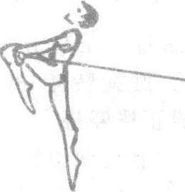动作要领 面对单杠站立,手正握杠,由蹲悬垂姿势开始, 右(左)脚蹬地,左(右)腿屈膝从杠下两臂间穿过用腘窝挂杠;两臂与右(左)腿伸直身体后仰挺胸、抬头的悬垂姿势。 保护与帮助 保护者站在练习者杠侧位置,一手托腰背部,一手握上臂,帮助成挂膝悬垂。 教学重点 两臂伸直, 膝腘窝用力收紧挂杠, 挺胸、抬头后仰, 切忌摆动。 |