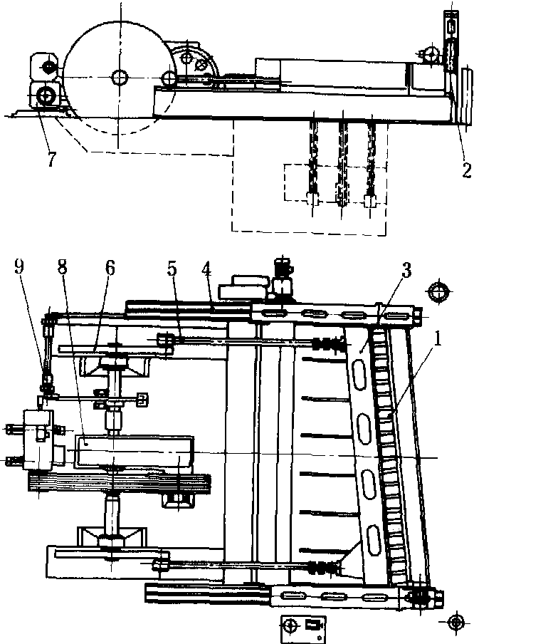 1.工作台;2.操作箱;3.刀床;4.导轨;5.连杆;