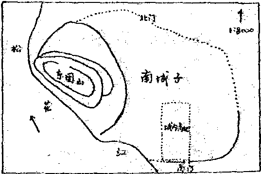 | 释义 | 南城子古城址汉代夫余王国前期王城。渤海王国涑州治所。位于吉林省吉林市郊区江南乡永安村东团山南麓,当地群众称为“南城子”,故名。此城不仅倚山傍水,形势险要,而且地处高阜,可避水害。城垣为黄土迭筑,平面略近圆形。仅部分东南墙保存尚好,西南墙和西北墙已不存,但城基遗迹大部分隐约可见。此城正西无墙,以东团山和松花江为屏。东南墙现高5—6米,顶宽1米许,在墙外可见护城河遗迹。城有南北二门,南门现宽16米,北门现宽44米,是遭人为破坏后的宽度。城垣周长 (不包括西面山城城垣) 1050米。城内地势不平,南高北低,近南门处,有一长方形高地,高出城地面1—1.5米,南北长150米,东西宽73米。(见图)。城内农田中,有大量陶器残片和少量砖瓦器残片散布。是夫余王国的前期王城。解放前后,考古学者在城内曾采集和发掘出一些唐代地方政权一渤海王国时代的建筑构件。如具有明显特征的鸱鸱吻、板筒瓦、“花砖式”残陶罐等。当是渤海王国的独奏州之一涑州城所在地。