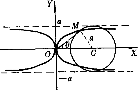 由原点向半径为a而圆心在X轴上变动的圆所引切线的切点轨迹(如图).