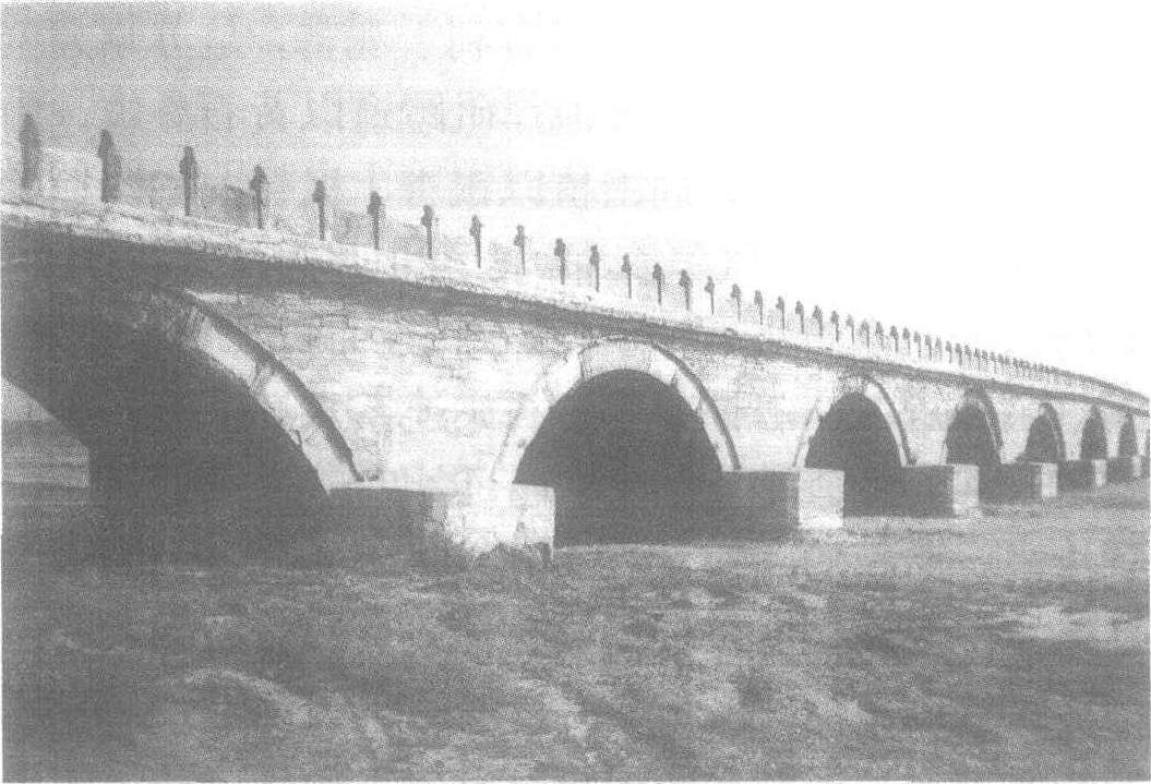 卢沟桥 卢沟桥全国重点文物保护单位。亦作芦沟桥。位于永定河上,距市区约15公里。是北京现存最古老的联拱石桥。始建于金大定二十九年(1189),明昌三年(1192)竣工。明清两代迭有重修重建。初名广利桥,后以卢沟河为名。卢沟之名始于唐代,为古漯河支流,亦称桑干河、黑水河、无定河,清康熙年间改名永定河,而桥名仍用旧称。桥长266.5米,宽9.5米,共11孔,全以白石建造。桥身、拱䃠、桥墩以腰铁牢固,桥墩呈船形,迎水面砌作分水尖,尖端加装三角铁柱,称“斩凌剑”,以抗御洪水和春冰。中心主桥孔跨度21.6米,余孔渐收,近岸孔跨度约16米。两侧桥栏有石雕栏板279块,望柱共281根,每根柱头均雕有大石狮,共281个,大狮身上有小狮198个,顶栏上2个,华表上4个,大小总计485只。因其数多,且小狮子多雕于隐蔽处,故明代即有“卢沟桥的狮子——数不清”的歇后语,以及“数之辄隐其一”(蒋一葵《长安客话》)、“数之辄不尽”(刘侗《帝京景物略》)等说法。桥两端东有石狮,西为石象,紧抵桥头望柱,风趣而实用。卢沟桥以工程宏伟、石雕精美闻名于世,并以晓月清景著称,早在金代即为燕京八景之一,今桥头碑亭尚存清乾隆帝所题“芦沟晓月”汉白玉碑刻。元时意大利旅行家马可·波罗在其游记中盛赞卢沟桥,认为他处桥梁之美鲜有及之者。元人鲜于必仁《双调·折桂令·卢沟晓月》所咏“山色空濛,林景玲珑。桥俯危波,车通远塞,栏倚长空”,清王鸣盛《芦沟桥》所咏“马邑风烟通一线,太行紫塞压千盘”,皆饶画意。明画家王绂绘有《芦沟晓月》图,则富有诗情。元明时,卢沟桥如同古长安之灞桥,为京都送别之地,有“落日芦沟桥上柳,送人几度出京华”之语。卢沟桥东不远有始建于明崇祯十一年(1638)的拱北城,亦名拱极城,是明清时守卫京都的门户,后为旧宛平县城。1937年七月七日侵华日军制造卢沟桥事变(即“七七事变”),发动对中国的侵略战争。此日晚10时,日本侵略者声称一名士兵失踪,要求进入宛平城搜索,借此挑衅,其无理要求遭拒绝后,即炮击宛平城并向卢沟桥西侧进攻。当地中国驻军二十九军奋起自卫,英勇抵抗,与日寇展开激战,中国人民伟大的抗日民族自卫战争从此开始。至1945年抗日战争胜利,日本侵略军无条件投降,以可耻的失败告终。1987年7月7日隆重纪念卢沟桥事变爆发五十周年之际,中国抗日战争纪念馆在宛平城落成并开馆。 卢沟桥Lugou Bridge又称“芦沟桥”。多孔联拱石桥,位于北京市城西南13km丰台区,跨永定河(金时称“卢沟河”)。始建于金大定二十九年(1189年),竣工于明昌三年(1192年)。全桥11孔,长212.2m,计入两端桥堍共长266.5m,桥面车道宽7.6m,全宽8m多,跨径、矢高、墩宽由桥两端向桥中增大,净跨径为11.40~13.5m,矢跨比为1∶3.5~1∶3.7,拱圈厚0.5~1.0m,墩宽5.30~7.25m,上游为尖端形,下游为平头形。桥面两侧设石栏杆,栏杆柱(北侧140个,南侧141个)高1.4m,间距1.8~2.0m,其间嵌石栏板,高85cm,柱头上刻有大、小石狮子485个,雕刻精美,栩栩如生,是不可多得的艺术品,桥头有华表和御碑亭等文物。该桥曾于元、明两代经修缮;清康熙年间东起第一、二孔水毁,进行了重建,其余仍为金时所建,至今已经历800多年,拱圈局部虽有风化剥落,但尚可通车。1975年曾进行承载力测验,试验按轴距1.5m、15轴挂车进行,分级加载至429t时结构仍处于弹性状态,1976年曾通过400t平板车。该桥为燕京八景之一,称“卢沟晓月”,并经《马可·波罗游记》向西方介绍,闻名中外。1937年7月7日“卢沟桥事变”在此发生,中国人民从此开始了持续8年的抗日战争。该桥成为具有历史意义的纪念建筑,被列为全国重点文物保护单位。 卢沟桥中国北京现存最古老的石造联拱桥。位于北京城南15km处,横跨丰台区永定河古渡口。始建于1189年(金大定二十九年)。1192年(金明昌三年)落成,已具有800多年的历史。在《马可·波罗游记》中誉为世界名桥,扬名于世。初名广利,元代改为卢沟。全长266.5 m,宽9.3 m,车道7.6m。下分11个拱洞,最大孔径14.26m,余11.57~13.17m。矢跨比1∶3.5。拱圈外侧9块券脸石,其间8块横向条石与之相交。桥墩之下打设木桩,加固基础。卢沟桥共有石狮501只,其中大石狮2只,中石狮285只,小石狮214只。即桥上两侧石雕护栏共有281根望柱,柱头雕有中石狮281只,小石狮214只;除了望柱上的石狮外,在桥两端有4根华表,每个华表顶都刻有一个石狮,计中石狮4只;桥东栏板尽头还有2只大石狮,长约1.7 m,高约0.9 m,是典型的元代石狮造型。与石狮相对位于桥西栏板尽头有2只大石象。1937年7月7日,日本侵略军发动事变,突然向当地驻军发起进攻,驻军奋起抗击,史称“卢沟桥事变”,也称“七七事变”,从此,中国进入八年抗日战争时期。该桥被列为国家重点文物保护单位。 |
