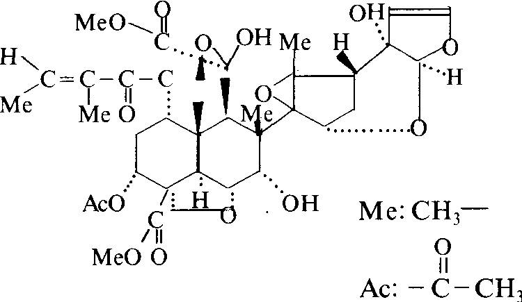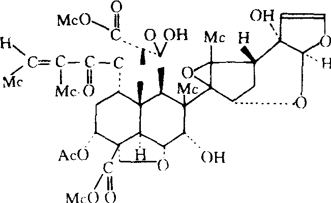 | 释义 | 印楝素azadirachtin具有多种控制害虫作用的植物源活性物质。存在于楝科楝属印楝(Azadirachtaindica)植物种核和叶子中。1986年德国克劳斯(W.Kraus)报道其化学结构式: