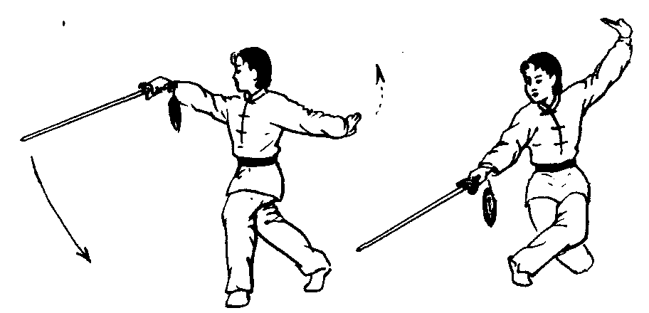 | 释义 | 压剑剑法之一。是以平剑由上向下按压的动作。在《武当剑法大要》等武术古籍中对压剑有较详细的记载。在现代剑术套路中压剑出现得不多,在太极剑套路中有所应用。动作过程:右手持剑,手心向下,剑尖向前成平剑,向下按压,左手上架,同时两腿成下蹲或歇步。(图2—4—110)动作要领:做压剑时要做到手心向下,剑身扁平,松肩沉腕,着力点在侧身平面;多用螺把握剑。攻防含义:压剑是防守型剑法,当对方剑攻来时用剑身将其压住或压低。注意事项:老年人做此剑法时,如下蹲有困难可半蹲,但要将剑向下按压的动作做出。
