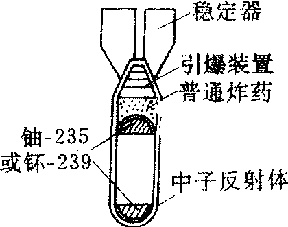 | 释义 | 原子弹yuanzidan根据快速的、不可控制的原子核裂变链式反应原理而设计制造的炸弹。原子弹的装置和原子反应堆主要有三点不同:❶它要用极纯的235U或239Pu作为核燃料。