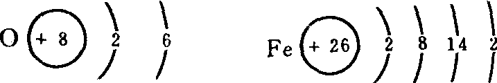 氧原子的原子核有8个带正电的质子,核外有两个电子层,K层有2个电子,L层有6个电子。铁原子的原子核有26个带正电的质子,核外有4个电子层,K层有2个电子,L层有8个电子,M层有14个电子,N层有2个电子。 |