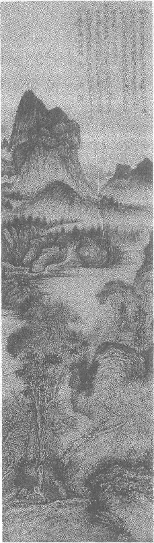 | 释义 | 原济古木垂荫图轴清。原济绘。纸本设色。纵175厘米,横50.7厘米。辽宁省博物馆藏。原济(公元1642—约1718年)本姓朱,名若极,广西桂林人。明藩靖江王朱守谦后裔。公元1645年后削发为僧,法名原济,小字阿长,字石涛,别号极多,常见的有瞎尊者、苦瓜和尚、清湘老人、零丁老人等。早年云游四方,屡登黄山、庐山等诸名胜。中年住南京,曾在南京、扬州两次见康熙帝。50岁时到北京客居三年,晚年定居扬州。原济与梅清、梅庚、戴本孝等交往,为“黄山画派”主将。擅长花卉、蔬果、兰竹,兼工人物,而以山水成就最为突出。虽师法元人笔意,但更注重深入自然,其画布局新颖,笔墨千变万化,笔势多种多样。风格既雄健恣纵,亦秀逸闲静,在气概与风格上自具独特面目。原济与弘仁、髡残、朱耷合称清初四画僧。摹古派领袖王原祁曾说:“海内丹青家不能尽识,而大江以南,当推石涛为第一,予与石谷(王翚)皆有所未逮。”在山水画创作上石涛有许多精辟见解,多见于《石涛画语录》。此图绘江河及两岸山景。山势危严,林木蓊茸,楼阁临江,烟云微茫。江水滔滔而去,远处一石桥横跨其上。此作品以笔墨见胜,用墨干湿相间,用笔或柔韧,或刚劲,时而疏简,时而繁密。山石作荷叶皴、云头皴,树林作点墨和双勾。作者将各种笔法、墨法很好地统一在一起,并施以淡青色,堪称一幅杰出作品。
