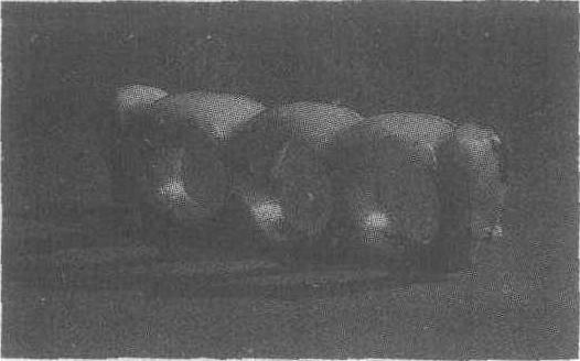 | 释义 | 双兽首三孔玉器新石器时代红山文化。高2.8厘米,长9.2厘米,宽1.8厘米。辽宁省凌源县三官甸子采集。辽宁省博物馆藏。红山文化为中国北方地区的新石器时代文化,分布于内蒙古自治区东南部、辽宁省西部及河北省北部地区,因1935年内蒙古赤峰市红山后遗址的发掘而得名。放射性碳素测定距今5000多年。所出土的文物中,不乏精彩的玉器,且形状独特,为其他地区所未见。此三孔器使用青绿色玉料,某些部位有深色浸蚀。器两端雕有兽首,尖嘴、大耳、形如猪头。器身三圆孔相连,中间一孔有两小孔,两侧孔各有一小孔,三孔均穿透至底。底平,可平放,亦可系绳佩带。专家认为三圆孔可插入手指,为一种指饰。
