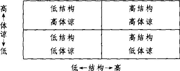 | 释义 | 双因素模式twofactor model又称二维模型、四分图理论。反映组织领导的高效率取决于结构与体谅两种因素的最佳配合。是美国俄亥俄大学教授拉尔夫 · 斯托格弟(Ralph.M.Stogdill)和卡洛尔·沙特尔(CoHoel.L.Shartle)提出的。他们认为,组织中的领导行为包括主动结构和体谅两个主要因素。主动结构是以工作为中心,强调组织的需要;体谅是以人际关系为中心,强调职工个人的需要。只有将主动结构和体谅两个因素很好地结合起来,才能实现高效率的领导。主动结构和体谅的结合有4种基本形式,可用两根线画出二维四分图表示: