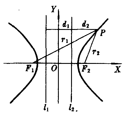 =1上任意一点P到焦点F1(或F2)的距离r1(或r2)和到相对应的准线l1(或l2)的距离d1(或d2)之比等于双曲线的离心率e