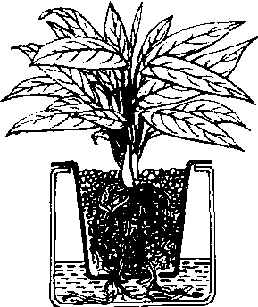 | 释义 | 双盆水培double-container growing用两个大小花盆配套而成的无土栽培花卉的方法。外盆无底孔,盆沿向内;内盆有底孔,盆沿向外,两盆相叠而成。外盆内贮营养液,使液面高于内盆底孔,内盆中填充惰性粒状基质支持植物,营养液可经内盆底孔借毛细管作用上升,植物的根也可穿过盆孔进入外盆。此法适用于室内陈列的非旱生性观赏植物。