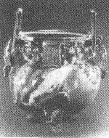 金代耀州窑青瓷器,1960年陕西省蓝田县出土。通高二十七厘米。灰白胎,胎质细洁,青釉色调极淡,灰白明亮,侈口平折沿束颈,腹圆鼓,下承以三兽足,兽头圆睁双眼。炉颈、肩、腹三部分印出莲瓣纹、回纹和夔纹。该炉造型端庄、稳重,现藏于陕西省博物馆。