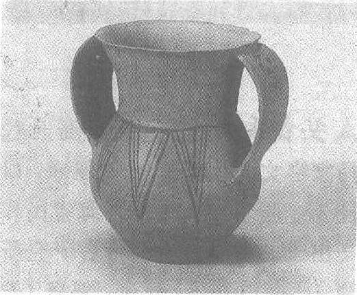 | 释义 | 双耳陶罐铜石并用时代齐家文化。高10.5厘米,口径7.5厘米。1976年青海省大通县出土。青海省考古所藏。此罐为泥质红陶。侈口,粗筒颈,小鼓腹,平底。口沿至腹上部有两个宽片大耳。两耳上部镂刻人面纹。由肩至腹以红彩绘复线三角纹,简洁疏朗。此罐的形制和纹饰具有齐家文化的典型性。齐家文化出土的铜镜上也有类似三角图案。齐家文化是新石器时代晚期至青铜时代早期的文化。主要分布在甘肃、青海境内的黄河沿岸及其支流。其早期年代为公元前2000年左右。