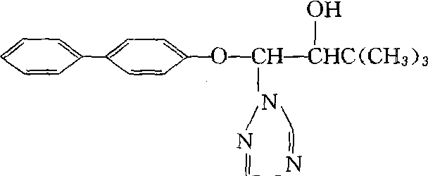 | 释义 | 双苯三唑醇bitertanol杂环类杀菌剂。化学名称:1-联苯氧基-3,3-二甲基-1-(1,2,4-三唑-1-基)丁醇-(2)。化学结构式如下。原药为无色晶体,熔点123~124℃,易溶于异丙醇、甲苯、二氯甲烷、环己酮,不溶于水和脂肪族碳氢化物,在酸性和碱性介质中较稳定,在pH3~10时贮存一年不分解。广谱性杀菌剂,主要抑制菌体细胞麦角甾醇的生物合成。从而干扰细胞膜结构,使菌体细胞变形、菌丝顶端膨大、分枝畸形、生长受抑制,在植物体上可从叶面渗透,进入植物体液输导的内吸性能。用于防治多种植物的锈病、白粉病、叶斑病、黑星病等具保护和治疗作用。对人畜低毒、大鼠急性口服LD50>5 000 mg/kg,急性经皮LD50>5 000 mg/kg,对眼粘膜有微刺激,对皮肤无刺激作用,对鱼类及水生生物毒性中等,对蜜蜂毒性很低。