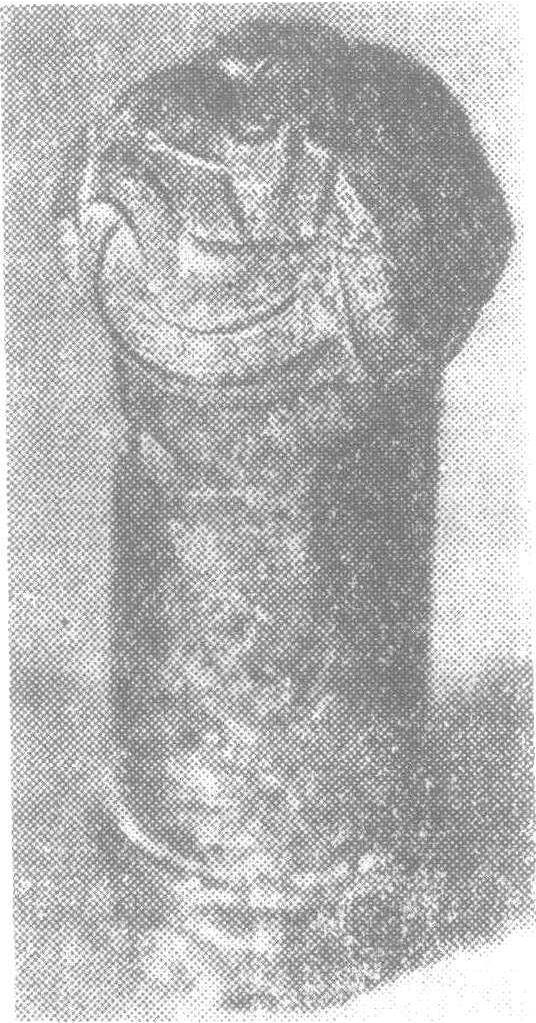 | 释义 | 双蟠龙纹铜杖首战国。通高8.4厘米,筒高5.7厘米,口径2.7厘米。北京市文物事业管理局在废旧物品中拣选。此器双龙身躯互相蟠绕,龙头相对突起于顶端,龙尾伏于龙首外侧,头尾之间镂空。龙身满饰鳞纹,圆目似曾镶嵌饰物,已脱落。柄呈筒状,可以纳杖;中部有对穿圆孔可贯钉。筒口饰綯纹一周。此杖首造型构思巧妙,纹饰精细,是战国初期的燕国精品佳作。