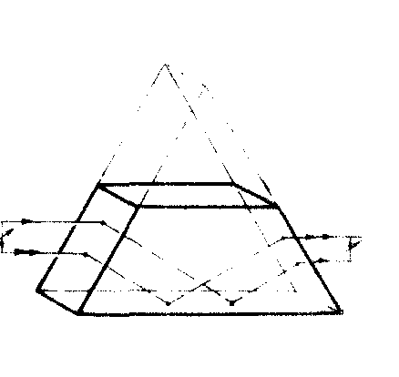 | 释义 | 反射棱镜fanshe lengjing利用光的反射改变光线方向的棱镜。当白光通过反射棱镜时,不会发生色散,所以又叫非色散棱镜。在棱镜的侧面上镀有金属薄膜,形成反射面。直角棱镜有一个反射面,垂直于直角面入射的光束经反射面发生全反射,偏折90°出射。像和物上下转动90°,而左右不变。潜望镜中用的是直角棱镜。波罗棱镜利用直角棱镜的两个面为反射面。垂直于斜面入射的光束经过两次全反射转过180°,它相当于两个平面镜组成的90°角镜。像和物上下颠倒,左右不变。用两块波罗棱镜组合起来,不改变垂直入射的光束的方向,而像与物上下、左右皆倒转。在双筒望远镜中用来正像。达夫倒像棱镜,又叫鸠尾棱镜。它不改变光的传播方向,可将画面正过来,常用于准直管中。正四面体直角棱镜,又叫角锥棱镜,由三个互相垂直的棱面组成。从斜面入射的光线相继在三个直角面上全反射后,经斜面与入射光线平行反向射出,其性能和空心锥镜相似。自行车的尾灯有类似的作用。五脊棱镜,又叫五角棱镜、五楞棱镜。相当于45°角镜。使光线偏折90°角。常用作测距仪两端的反射镜。许多反射棱镜与一定的角镜相对应,但是由于反射标准镜多采用全反射,能量损失少;且棱镜加工后角度和平面都不易变形,比角镜耐用,所以光学仪器多采用反射棱镜。棱镜对材料的透明度及光学均匀性要求较高,还要注意克服色散现象。