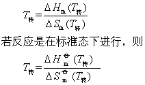 常用的热力学数据均为标准态的,非标准态的转折温度可通过上式估算。为方便起见,实际常用298K时的 做近似处理,即