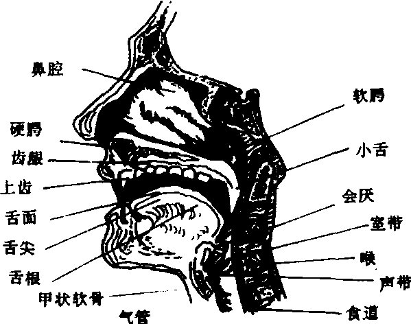 | 释义 | 发声器官Fasheng qiguan发声器官应包括:❶喉部。位于颈前正中部位,上通咽,下接气管,(成年男性可见有突起于颈前上部的喉结,俗称喉头。)喉部由软骨、韧带、喉肌和粘膜等构成。喉部是由甲状软骨、环状软骨、勺状软骨和会厌软骨与将这些软骨连结在一起的膜与肌肉组成,形成喉部结构的支架。甲状软骨是一对骨板,后面大部分是空着的,正好将环状软骨包围于内侧,左右软骨板形成角度,形如打开的一本书。女性与儿童两骨板间角度约为120°角,成年男子随着声带的伸展,两骨板向前突出,形成只有90°左右的角度,通常叫它喉突起,“亚当的萍果(Adam’sapple)”,亦即喉结。勺状软骨位于甲状软骨下端,与气管顶端相连,形似指环,前狭后宽。勺状软骨是一对锥体形的小软骨,底部与环状软骨形成关节,能自由活动,因之对改变附着于前方的突起(声带突起)的声带张力及改变声门的大小起着重要的作用。会厌软骨呈叶状,其茎部连于甲状软骨内侧。