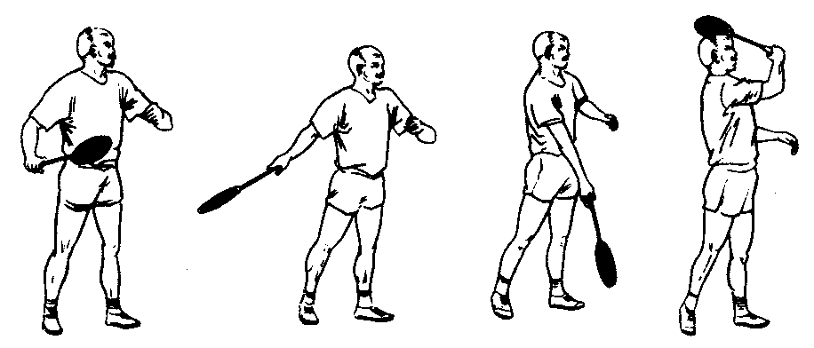 | 释义 | 发球技术是羽毛球基本技术之一。发球质量的好坏,直接关系到比赛的主动或被动,与比赛胜负有很大关系。发球有正手和反手两种方法。根据球在空中飞行的弧线,可分为发高远球、平高球、平快球和网前球等。发球首先要选好站位。单打应站在贴近中线距前发球线约1米处;双打可稍靠前一些。正手发球时(以右手握拍为例),身体侧对球网约成45°。两脚自然开立与肩同宽,左脚在前,脚尖指向发球方向,右脚在后,身体重心落在右脚上。右手握拍向后侧举起,左手屈肘,用拇指、食指和中指轻轻地夹持球托与羽毛相接处置于胸腹前。挥拍时,手臂由后向前划弧摆动逐渐加速,身体随之向左转动,重心前移到左脚上。在右手挥拍同时,左手自然松开让球平稳下落。球拍在身体右侧前方腰以下部位击球,将球击到斜对面的接发球区内。(见图2—3—26)反手发球时,站在靠近前发球线的中线处,多数是右脚在前,上体稍前倾,重心落在前脚上。用左手大拇指和食指捏住球的靠近身体一侧的羽毛,并将球横拿使球托部位指向身体右侧腰部以下。右手反手握拍,拍面稍后倾,置于腰腹前。击球时,利用手臂带动手腕和手指发力向前推送球,将球击到斜对面的接发球区内。