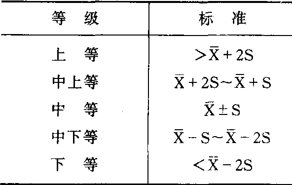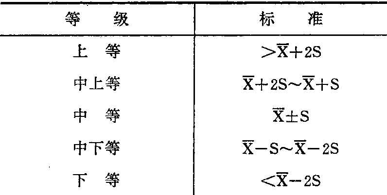 注:代表均值,S代表标准差 发育等级评价法fayu dengji pingjiafa发育离差评价法之一。较其他方法更为常用。一般采用身高、体重、胸围三项指标,将标准分为五个等级(见表)。体重上等者,可能是发育良好的表现,但也应考虑有肥胖症的可能。体重处于下等者,在排除疾病后,要了解其营养状况。发育等级评价法只能逐一对单项指标做出评价,因而无法对个体儿童的发育匀称度做出正确判断,且不便于进行动态观察。 五等级评价标准表 ![]()