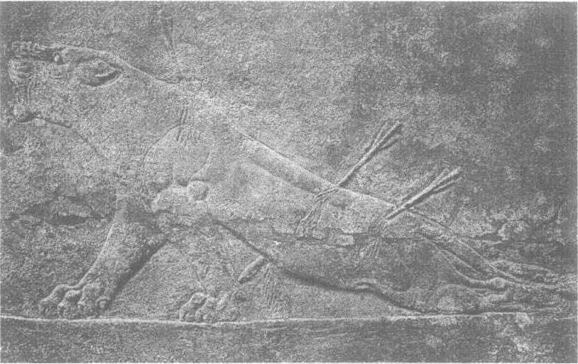 受伤的狮子 亚述帝国是个军事集团国家,国王崇尚武力,为炫耀自己,在王宫的建筑装饰上常常雕刻表现军事、狩猎等题材的浮雕。像表现战争的有国王征伐阿比巨人和追剿敌兵的场面,还有表现与依蓝人的战争以及国王出猎场面的浮雕。这些带有情节性的浮雕充满了一种动感。 这幅《受伤的狮子》,以特写式的素描手法,集中刻画了一只受伤后痛苦挣扎的母狮形象。它的背部已中三箭,后身已瘫在地,但求生的反抗使它以前肢坚强地支撑着头部,不住地吼叫着。狮的姿态成一正三角形,突出了母狮受伤后顽强挣扎的神态,成功地表现了这 一悲剧性的主题。这件作品,雕塑家有意无意地透露了对狮子悲惨命运的同情。 这幅作品以简洁有力的线条着力刻画狮的动势和情绪,去掉了不必要的背景,从而强调了主体,较之某些以繁复画面为背景的浮雕更为成功。 |