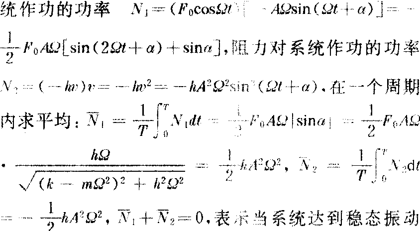 | 释义 | 受迫振动shoupo zhendong系统在持续的周期性外力或非周期性外力作用下而被强迫进行的振动。也称强迫振动。周期性或非周期性外力叫强迫力或策动力。例如扬声器的音圈—纸盆振动系统受到持续的电磁策动力的振动,传声器的音膜在持续的声波作用下的振动,以及蒸气机活塞的往复振动、缝纫机上针头的上下振动、钟摆的摆动都是受迫振动。周期性外力可以是简谐力(力随时间按余弦或正弦规律变化)也可以是非简谐力,一般讨论具有普遍意义的简谐强迫力作用下的受迫振动,即讨论弱阻尼情况下振动系统加上一简谐强迫力的作用下的振动。用x坐标表示质量为m的物体的位移,物体受到回复力-kx、阻力-hv(h为阻力系数)以及简谐强迫力F0cosΩt的作用。Ω、F0为简谐强迫力的圆频率、力的最大值(也叫力幅)。则物体的动 ❷系统的稳态振动:系统在简谐强迫力的作用下,开始时的振动情况很复杂,经过足够长的时间后,第一项衰减为零,即瞬态 ![]() 一项已衰减为零),系统的位移仅由第二项描写: x=Acos(Ωt+α)。 此解称为稳态解。这是具有确定振幅A的简谐振动。因为振幅恒定所以称为稳态振动,其圆频率就是简谐力的圆频率Ω,并和简谐力F0cosΩt有一定的位相差α,将稳态解代入上述强迫振动方程可求得A和α,即A ![]() 与初始条件无关,而是由系统性质(ω0、β)和强迫力(Ω、H)确定。α不是初位相而是稳定振动与强迫力F0cosΩt之间的位相差。要注意与弹簧振子的运动方程x=Acos(ω0t+ᵠ)相区别。由于sinα恒小于零,所以α<0,就是说受迫振动位移的位相总是落后于强迫力的位相。从能量的角度来看,稳态振动能持续维持,在于外界强迫力不断向系统作功提供能量。简谐强迫力对系![]() 时,强迫力每秒所提供的平均能量正好补偿阻力所消耗的能量。正因为如此系统才能持续不断地作简谐振动。由稳态振动的振幅A表示式可见,当ω0<<Ω时,则振幅A极小,稳态振动近似为零,即系统避免了强迫振动。由于ω0=k/m,m越大k越小,ω0就越低。根据这个道理,为了使某些精密仪器或工作台避免由于运输或外来机械干扰所引起的振动,要尽可能地使系统的质量m增大k减小。例如摄制全息照片的工作台,一般用铸铁或水泥制成,质量很大,并垫以柔软的橡皮,这样就使系统的固有频率很低,有效地避免了外来振动的干挠。实际中许多系统,例如发动机、桥梁建筑、飞机、车船、声学装置等等,都需要避免有害的受迫振动,这就要根据系统的实际要求、环境条件和系统的动态特性等因素采取最适合的隔振、减振措施。另一方面受迫振动特别是受迫振动中的共振状态在工程技术和各学科领域中也有广泛的应用。 受迫振动又称“强迫振动”。机械系统在外激励的作用下产生的振动。在谐激励下,其稳态受迫振动(系统的振幅维持恒定)的频率和激励力的频率相同,而振幅不仅与激励和阻尼有关,还决定于系统的固有频率。当外激励的频率和系统的固有频率很接近或相等时,振幅将急剧增大,出现共振现象。 |