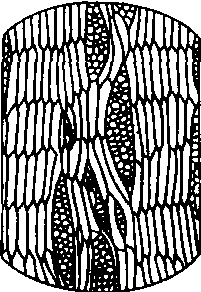纺锤状原始细胞有规则地水平排列,在弦切面上表现为层叠状态的形成层。叠生形成层的纺锤状原始细胞较短,细胞长度相似。以后由叠生形成层分裂产生叠生木材。刺槐、柽柳、柿属等为这种形成层。