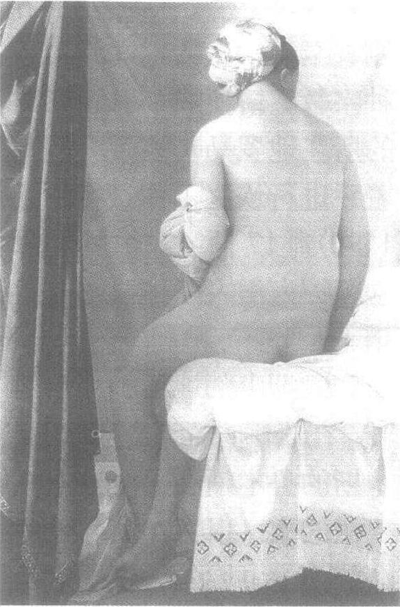 瓦尔邦松的浴女 安格尔 我们不难看到: 在从18世纪末到19世纪初的法国画坛上,与革命的起伏相平行,渐渐显示出一种从古典主义向浪漫主义的微妙推移。大卫曾是革命政府里的一名雅各宾党员,后来成了拿破仑的宫廷画家,他在古典主义的殿堂中留下了伟大的足迹,但论艺术天分却赶不上他的弟子安格尔。他的另一名弟子格罗,跟随拿破仑转战南北,画了多幅战争场面的画。由于画中戏剧性的动势和东方的色彩,自然背离了古典的形式,然而却意外地促成了向浪漫派转变的机缘。 安格尔可以说是位彻底的古典主义者,是齐整的形式美的信奉者,他把拉斐尔当作神却把鲁本斯看作绘画的破坏者。由于他对自然的尊重和不断地进行研习,因而所作作品无怪乎会受到像后来的德加那样严谨的素描家的尊崇。出自安格尔门下的夏里奥,则显示出了浪漫的气质。喜爱骏马的席里柯,后不幸因骑马事故而早逝。他描绘过的赛马在疾跑中的状态,则成了马奈和德加的先声。至于倾倒于鲁本斯的德拉克洛瓦,更是在色彩的表现上赋予了新的生命,因而给予了从印象派所开始的现代绘画以极大的影响。安格尔与德拉克洛瓦两人的禀性完全不同,他们一面终生互相敌视,一面无论哪一边,又都注重立足于牢固的现实的基础之上,从而促进了法国绘画的健康成长。