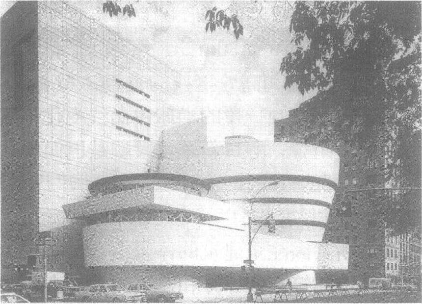 | 释义 | 古根汉姆美术馆建于1960年,位于纽约市中心,主体建筑为多层螺旋形的展览廊,由顶层盘旋而下,全长约41m,围绕着玻璃顶覆盖的圆形中庭。观众可乘中庭内的观景电梯上达顶层,然后沿廊参观时不知不觉走回底层,构思独具匠心,美术馆的外观如一盘旋的螺旋体,在闹市中十分醒目,此馆建成后因其非常规的空间处理方式,曾受到一些美术馆管理专家的非议,其缓缓上升的坡地面使挂在墙上的画始终看起来是斜的,因此现在多用于陈列抽象派绘画等现代艺术作品。设计者是著名的美国建筑师赖特。