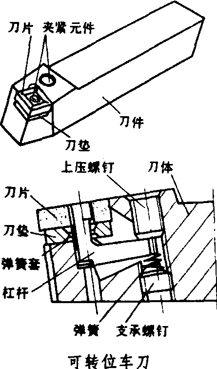 | 释义 | 可转位刀具indexable cutting tool将具有多个切削刃的多边形刀片,以机械夹固方式固定在刀杆或刀体上,形成可转位使用的刀具。多边形刀片用硬质合金或其他超硬材料制成。当一个切削刃用钝后,只要松开夹紧元件,即可将刀片转位后重新夹固,新的切削刃就进入工作位置,继续使用。因而具有切削性能好、生产效率高、使用寿命长等优点。根据切削方式和用途,常用的可转位刀具有可转位车刀(图)、可转位铣刀、可转位钻头和自动加工用可转位刀具等。