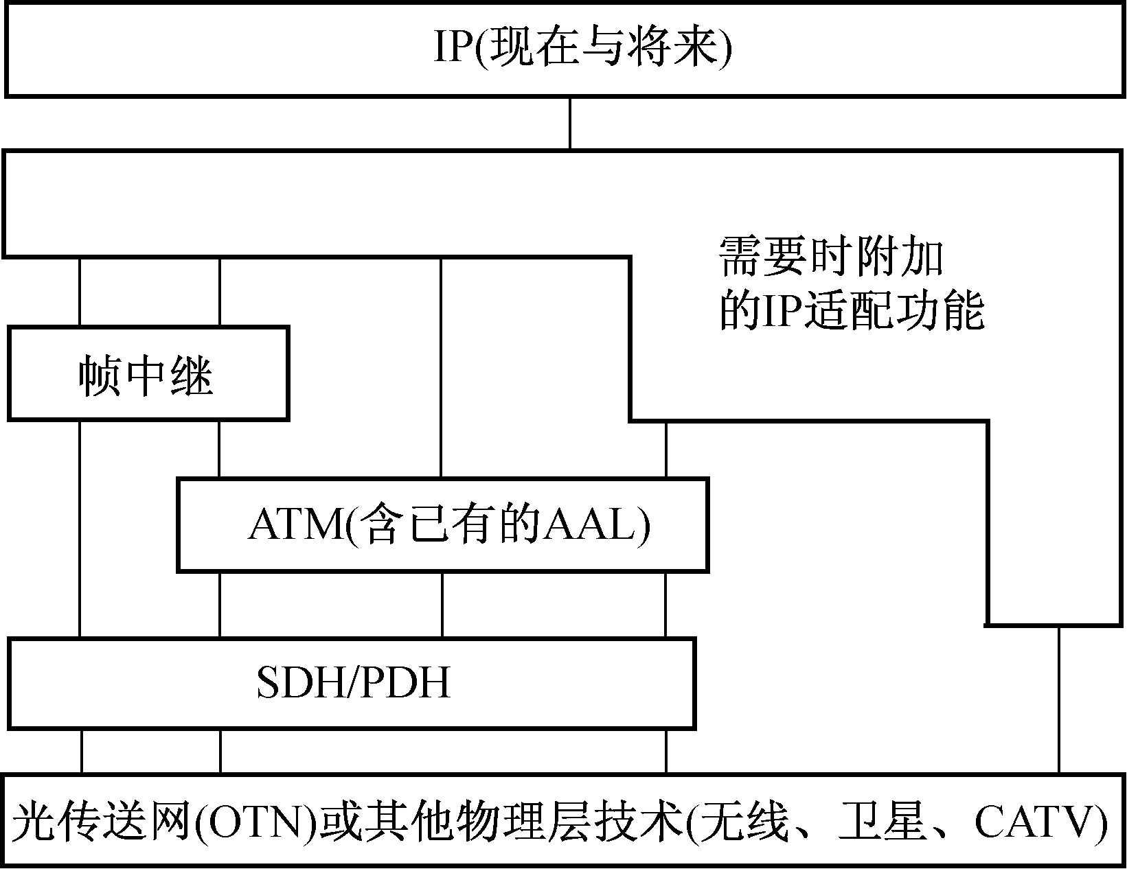 | 释义 | IP网分层协议模型layered protocol model of IP networks描述IP层与其下面各种电信协议层之间叠加关系的模型。对于IP业务用户来说,电信承载业务的利用是屏蔽的;根据具体情况,IP协议与下层的各电信协议之间需要相应的适配功能,QoS映射和汇聚/适配协议。IP网络的分层协议模型如下图所示。