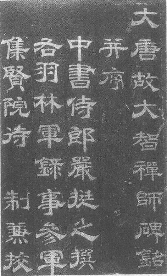 | 释义 | 史惟则隶书大智禅师碑唐。刻石。开元二十四年(公元736年)九月刻。碑高202. 厘米,宽112厘米,存于陕西省西安碑林。史惟则,生卒年不详,原名浩,字惟则,以字行,又字子华,广陵(今江苏扬州)人。天宝中官伊阙尉,玄宗时曾为集贤院待制兼校理,殿中侍御史,人称“史侍御”。工书,尤善隶书。史惟则、韩择木、蔡有邻、李潮,合称唐隶四大家。宋陈恩《书小史》云: “(八分书)颇近钟(繇)书,发笔方广,字形峻美,亦为时重。”明陶宗仪《书史会要》云:“(八分篆籀)如王公大人,进退有度。”传世书迹有《大智禅师碑》、《大照禅师碑》、《凉国夫人碑》、《龙角山元宫碑》等。大智禅师是慈恩寺和尚义福,为盛唐十大宗派第七派代表,曾拜荆州五泉寺神秀为师,后随师父同去洛阳,开元廿四年圆寂,时79岁。玄宗特追赠大智禅师谥号。碑全称《大唐故大智禅师碑铭并序》,又称《义福禅师碑》。史惟则,隶书碑文。笔画圆润丰腴,笔力刚柔相济,结体规矩严谨,有“老劲庄严”之感。传世拓本中以宋装本为佳,宋拓本首行“史惟则”之“则”字完好,上有张伯英隶书题:“大智禅师碑宋库装本”九字,现藏于北京图书馆。清王昶《金石萃编》有著录。