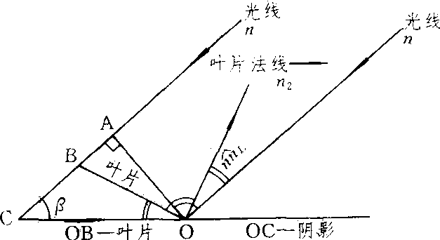 单位叶面积所形成的阴影面积。即叶面积的遮阴程度。阴影面积OC与叶片面积OB之比。由图中可知: