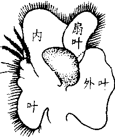 节肢动物的一种原始的双肢型附肢。扁平不具关节,与疣足接近。在轴部两侧,分成为外叶(第一外叶和扇形的第二外叶)和内叶。如半年虫的附肢。
