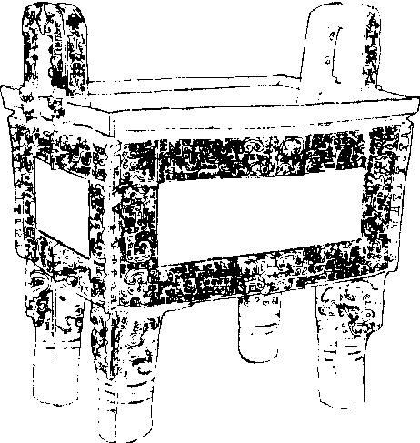 司母戊鼎 1939年安阳武官村出土 约60~70厘米的较大的熔炉, 以槽铸法浇注而成的。据测定,该鼎成分为含铜84.77%、锡11.64%,这一比例与《考工记》所载《六齐》中的 “六分其金而锡居一, 谓之钟鼎之齐”的青铜配比规律大体相符。该鼎体造型庞大、浑厚,是我国已发现最重的青铜器,它集中地反映了商代青铜冶铸技术的高度成就。 |