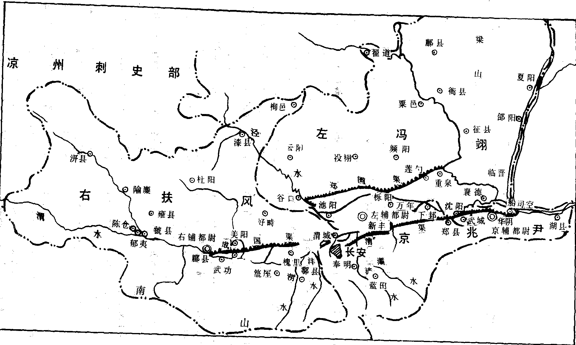 | 释义 | 司隶校尉部古行政区名。据《汉书·百官公卿表》,汉武帝征和四年(前89)置司隶校尉,察三辅、三河、弘农七郡。《后汉书·郡国志》载,司隶校尉部辖河南尹、河内、河东、弘农、京兆尹、左冯翊、右扶风七郡。以今地而言,东起河南安阳、中牟,西至甘肃华亭,南达秦岭,北包山西隰县。其中后三郡皆在关中。东汉治所在雒阳(今河南洛阳东北)。三国魏和西晋时改为司州,辖区仅黄河以东部分。 司隶校尉部官署名。汉代置。掌察百官犯法者。《辞海》:“司隶校尉部:西汉征和四年(公元前89年)置,掌京畿七郡捕督奸猾,察举百官以下犯法者。” 司隶校尉部简称“司隶”。西汉征和四年(公元前89年)置。督察京畿七郡。东汉时期成为行政区域,治今河南洛阳市北。西晋时期改为“司州”,治今洛阳市东北。永嘉(307—312)后废。 司隶校尉部西汉武帝征和四年(公元前89年)置。掌京畿、三辅、河东、河南、河内、弘农等七郡(三辅相当于三郡)捕督奸猾、察举百官以下犯法者。辖境相当于今陕西秦岭以北,陇县、彬县、黄陵、洛川,宜川以南;山西永和汾西以南,霍县、沁水,阳城以西和河南安阳、新乡,中牟以西,新郑、汝阳、西峡以北地区。设司隶校尉官,秩二千石,和州刺史作用相同,但比州刺史地位高。属官有从事,假佐等,又率领有由一千二百多名中都官徒隶所组成的武装队伍。东汉迁都洛阳,仍置司隶校尉,督察三辅。但东汉的司隶校尉部已成为行政区(相当于州),治所在𨿅阳(今河南洛阳市东)。建安十八年(公元213年)罢司隶校尉及凉州,以其郡国在关中置雍州。三国魏通称司隶校尉为司州, 西晋始定为正式名称,辖境缩小,不包括今黄河以西及华山以西地区。晋十六国时期,前赵刘曜都长安复置司隶校尉于长安,后赵石勒改为雍州,前秦苻健再改司隶校尉,苻坚时分司隶为雍州, 此后在陕西境内再没设置过司隶校尉。 西汉关中三辅政区形势图 司隶校尉部简称司隶,西汉征和四年(前89)设置,掌京畿7郡捕督奸猾,察举百官以下犯法者。辖地相当于今陕西省秦岭以北,陇县、洛川、宜川以南;山西省永和、汾西以南,沁水、阳城以西;河南省安阳、新乡、中牟以西,新郑、汝阳、西峡以北地区。东汉改为行政区,治所设在雒阳县(今洛阳市),西晋改为司州。东晋永宁二年(351)前秦以雍州改置,领京兆、冯翊、扶风、北地、咸阳、始平6郡。辖地约为今关中平原,治所在长安城,故址在今西安市未央区汉城乡,义熙十四年(418)大夏占据后废。 |