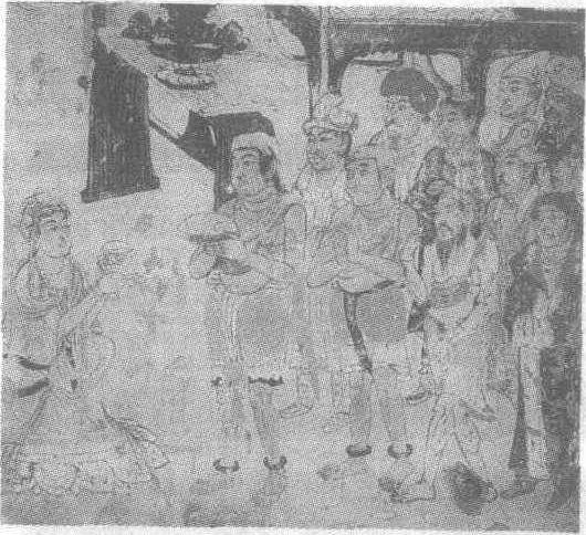 | 释义 | 各国王子图壁画盛唐。纵95厘米,横80厘米。甘肃省敦煌县莫高窟第103窟东壁南侧壁画。维摩诘居士称病后文殊师利前来“问疾”,双方反复论说佛法。一时,国王、大臣、各国王子及婆罗门等皆前来探视。此为绘于维摩诘下部的各国王子等人物。前面的两位是“昆仑奴”,黑皮肤,缠白头巾,身围绿短裙。项圈、手镯、脚环俱全。其旁的赤足者是婆罗门。西域胡人则穿红皮靴,着窄袖长袍。总之,这组人物形象和服饰特点皆十分明显。画师以淡墨起稿,黑墨定型,线条的虚实,笔力的轻重溶于人物的形象中,显示出同时代著名画家吴道子“落笔雄劲,傅彩简淡”的风格。人物具“有八面生意活动”之感。表明了画家与画师之间的相互影响关系。这幅壁画还具有重要的民族学研究价值。