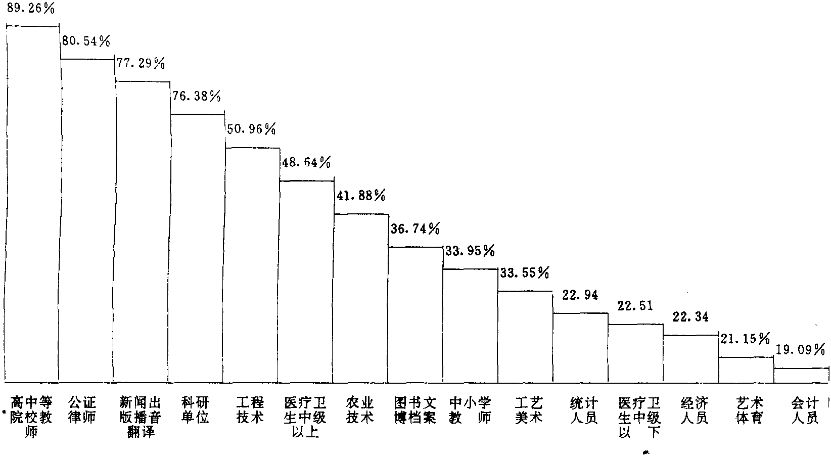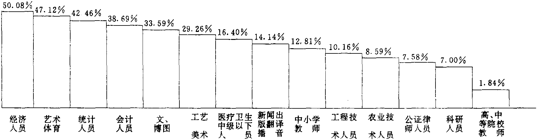 图3-5-4 各类专业技术人员中高中以下学历者的比例情况