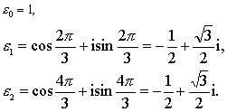不难验证 |1|=|ω|=|ω2|=1; 1+ω+ω2=0. 在复数平面上标出三次单位根时,它们正好把一个单位圆三等分. |