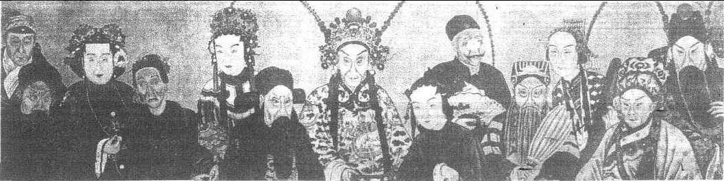 | 释义 | 同光十三绝清朝同治、光绪年间13位京剧、昆曲名演员的合称。清光绪年间,画师池客圃为这13位演员绘了一幅戏装画像,时人称之为 “同光十三绝”画像。画中绘有老生四人,为程长庚饰《群英会》中的鲁肃,卢胜奎饰《空城计》中的诸葛亮,张胜奎饰《一捧雪》中的莫成,杨月楼饰 《四郎探母》 中的杨延辉; 武生一人,为谭鑫培饰的 《恶虎村》中的黄天霸; 小生一人,为徐小香饰《群英会》中的周瑜;旦角四人,为梅巧玲饰《雁门关》中的萧太后,时小福饰《桑园会》中的罗敷;余紫云饰《彩楼配》中的王宝钏,朱莲芬饰昆曲《玉簪记》中的陈妙常;老旦一人,为郝兰田饰《行路训子》中的康氏。丑角二人,为杨鸣玉饰昆曲《思志诚》中的闵天亮,刘赶三饰《探亲家》中的乡下妈妈。13位演员中,朱莲芬、杨鸣玉专唱昆曲,其余11人唱京剧,但也唱昆曲,这说明当时京剧、昆曲是合在一起演出的。这幅画不仅为我们留下了当时13位著名演员的容貌,而且将当时京刷、昆曲的人物扮相为我们描绘了下来,成为京剧史研究的珍贵资料。