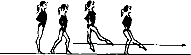 基本步法之一。跑步时两腿交替完成向前直膝小踢腿动作。动作要领 摆动腿向前小踢时直膝绷脚尖, 脚面向外展,踢腿角度为25°,然后用前脚掌落地。两腿交替向前小踢,上体稍后仰,两手叉腰或两臂侧举,头和上体、臂协调配合。