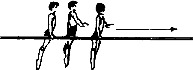 由杠上支撑开始,两手在杠上依次向前换握支撑行进的动作。用于提高臂的支撑力。动作要领 杠端侧立(面向两杠)手握杠端跳起成支撑,重心向左(右)前侧移,右臂顶杠放手向前移行10—20厘米,然后重心向右(左)前侧移,左臂顶杠放手向前移行10—20厘米。依次换手前移至另一杠端跳下。