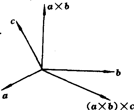 首先勾画一下向量三重积(a×b) ×c的轮廓(如图).向量a×b与a,b都垂直,且 (a×b) ×c与a×b也垂直,由 (a×b) ×c及a,b都与(a×b)垂直,得到向量(a×b) ×c与向量a,b共面,从而 (a×b) ×c必可表成a,b的线性组合.可以证明,(a×b) × c= (a ·c) b— (b ·c) a. 此式称为向量三重积展开式. 向量三重积的性质: ❶ 由向量积的负交换律可得 (a×b) ×c=-c×(a×b). ❷ 由向量积的负交换律和与数乘的结合律可得(a×b) ×c=- (b×a) ×c. ❸ 由于 (a×b) ×c是a,b的线性组合,a×(b×c)是b,c的线性组合,所以一般地有 (a×b) ×c=a× (b×c). |