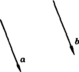 起点可以取在空间中任意一点,可以在空间任意平移的向量叫自由向量.在向量代数中我们所讨论的都是这种仅由模与方向确定的自由向量.两个自由向量相等的充分必要条件是这两个向量方向相同模相等,如图中的a和b. 除自由向量外,有时我们还会用到固定向量和滑动向量.关于这两类向量,这里不作详细介绍. |